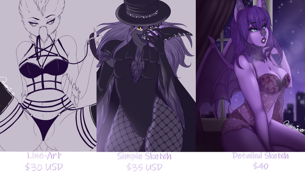 Starts at $65 USD2 full rendered images with 2 expressionsPrice goes up depending on complexity.